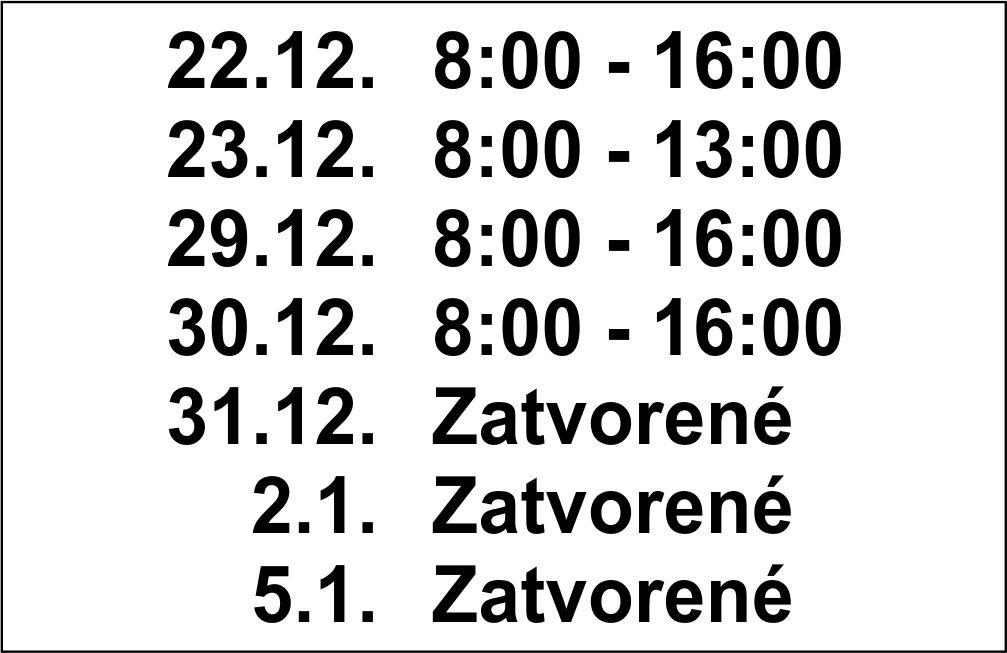 Otváracie hodiny počas vianočných sviatkov
