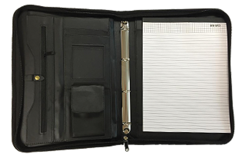 - so zipsom, 4-krúžková mechanika, 2 veľké vnutorné vrecká formátu A4 z toho jeden na zips, púzdro na mobil, - pútko na pero, 8-miestna kalkulačka, poznámkový blok A4, - rozmery: 250 x 340 x 30 mm