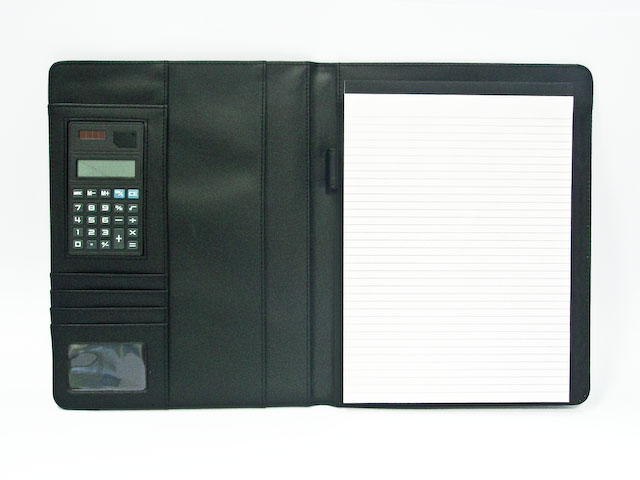 Konferenčná mapa so zipsom, vybavená písacou podložkou, vreckami na dokumenty a vizitky, úchytmi na písacie potreby, kalkulačkou a linajkovým poznámkovým blokom. V prevedení imitácie kože, úprava matná. Šírka chrbta 35 mm.