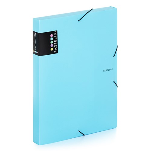 box v moderných pastelových farbách pre dokumenty vo formáte A4 s čiernymi gumičkami. Chrbát 30 mm. Rozmery 240x330x30mm Vyrobený zo silného polypropylénu.