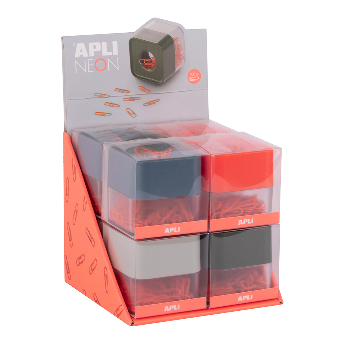 rozmery zásobníka: 150 × 246 × 146 mm materiál: silikón, soft touch úprava barva sponek: oranžová, 100 ks mix farieb: modrosivá, sivá, oranžová, tmavozelená