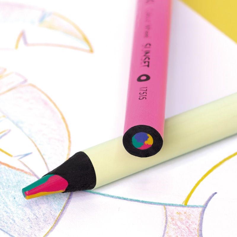 Obsahuje 4 hlavné farby: žltá, ružová, zelená a fialová.Priemer tuhy je 5 mm,