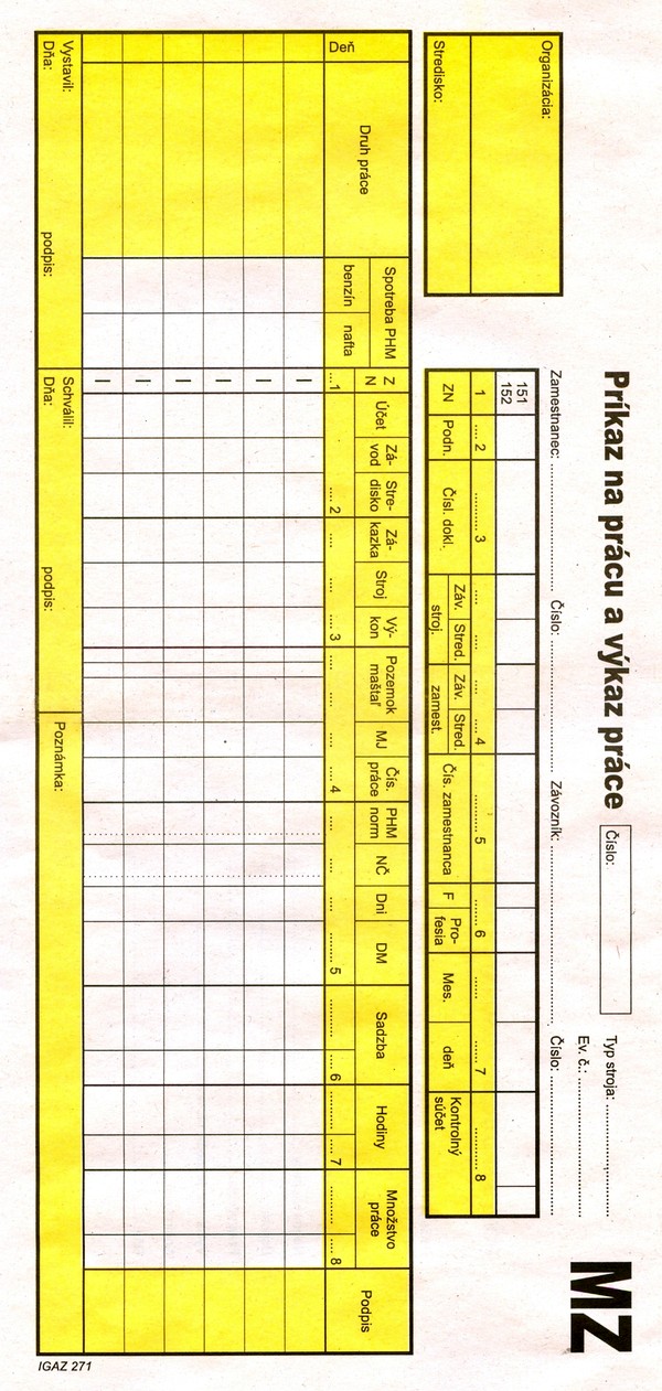 Príkaz na prácu a výkaz práce 150 list