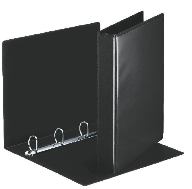 4-krúžkový celoplastový zakladač A4 s predným a chrbtovým priehľadným vreckom a D-krúžkom. Chrbát: 5,1 cm Kapacita: 220 listov