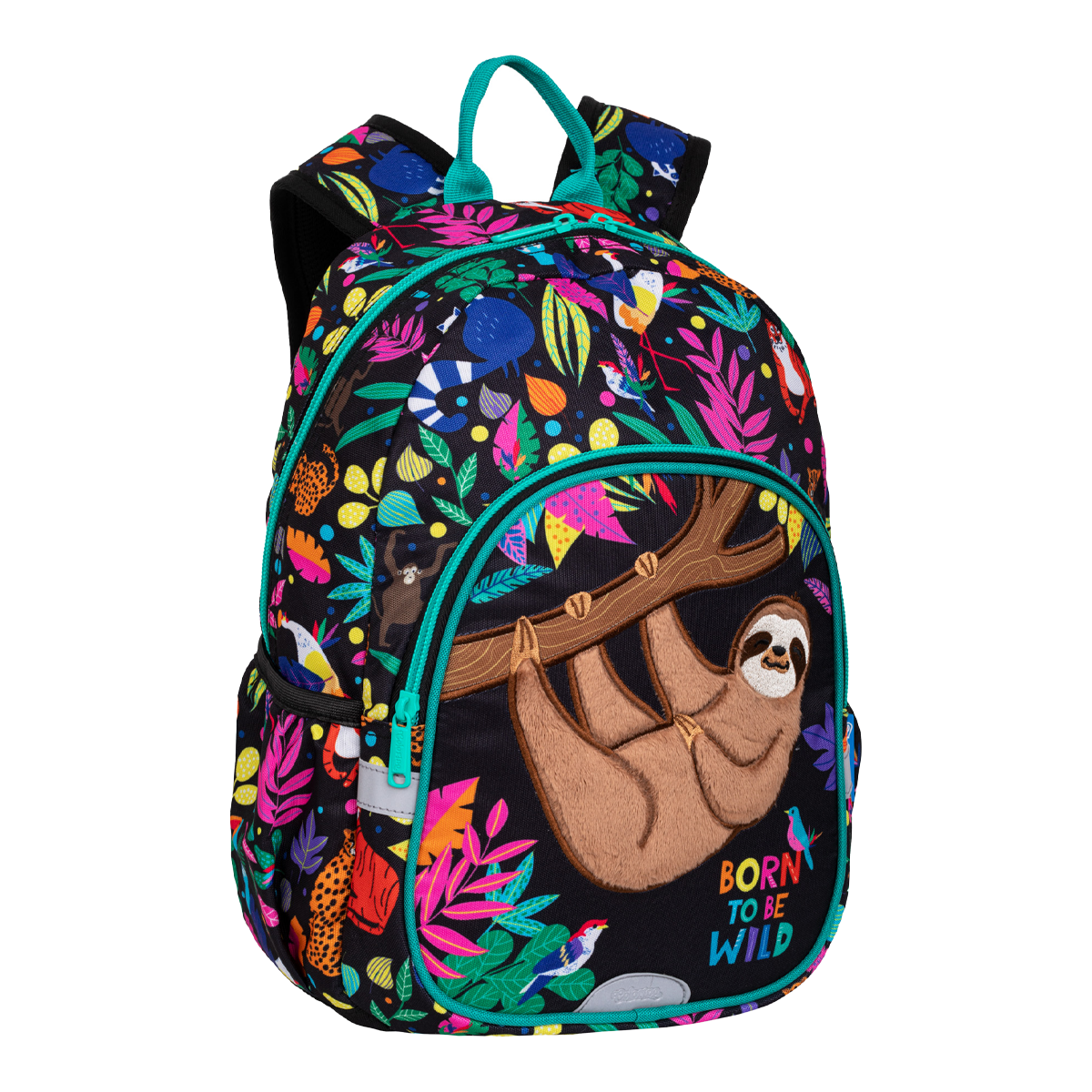Ľahký detský batôžtek s výrazným motívom a veľkou hebkou nášivkou leňocha. Polohovacie ramenné popruhy majú zapínaciu pracku cez hrudník s integrovanou bezpečnostnou píšťalkou. Dve bočné otvorené vrecká sú vhodné na fľašu alebo iné nevyhnutné drobnosti.