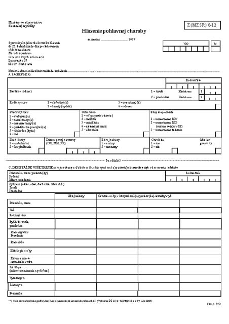 Hlásenie pohlavnej choroby Z(MZ SR) 8-12