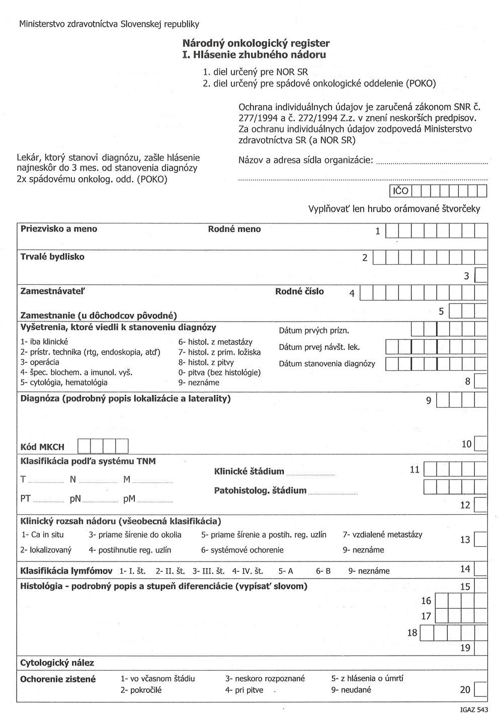 Hlásenie zhubného nádoru A4 súpr. 3-list