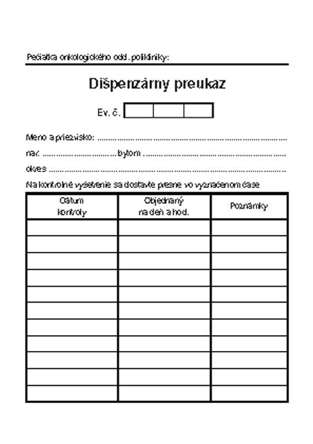 tlačivá Zdravotné