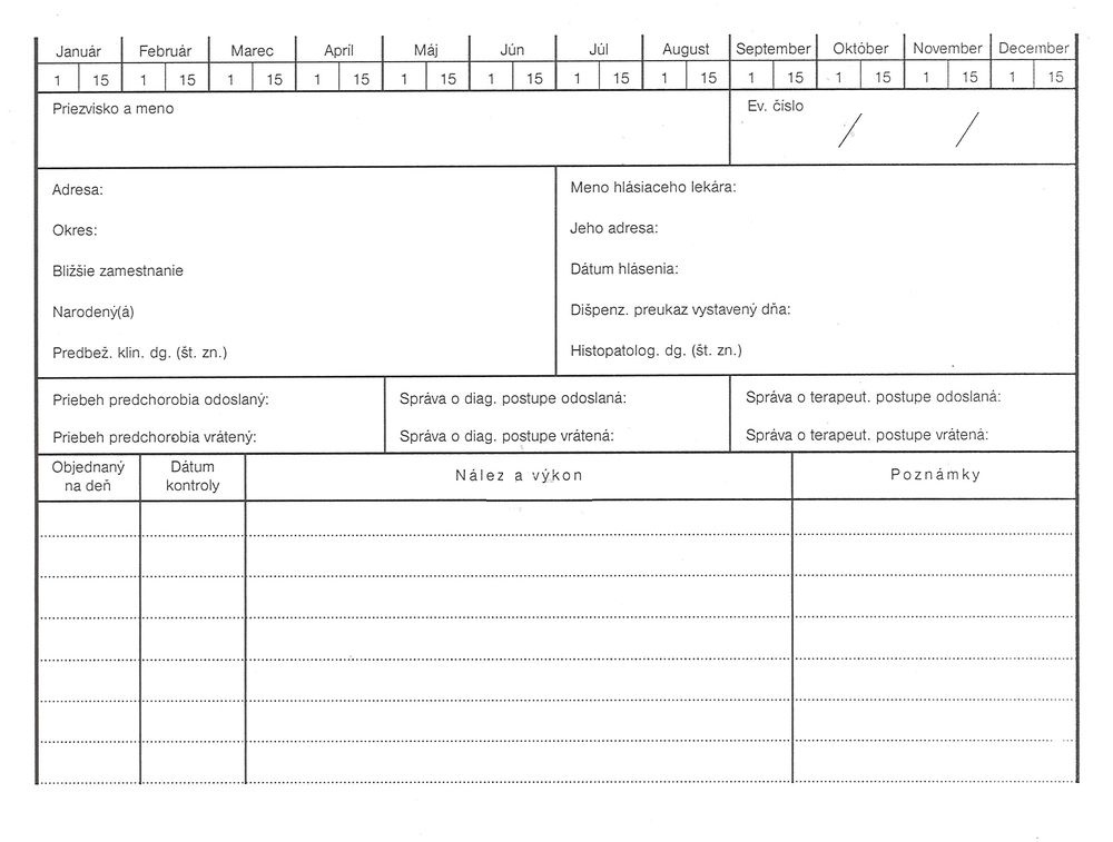 Evidenčná karta chorých na zhubné nádory A5 kartón